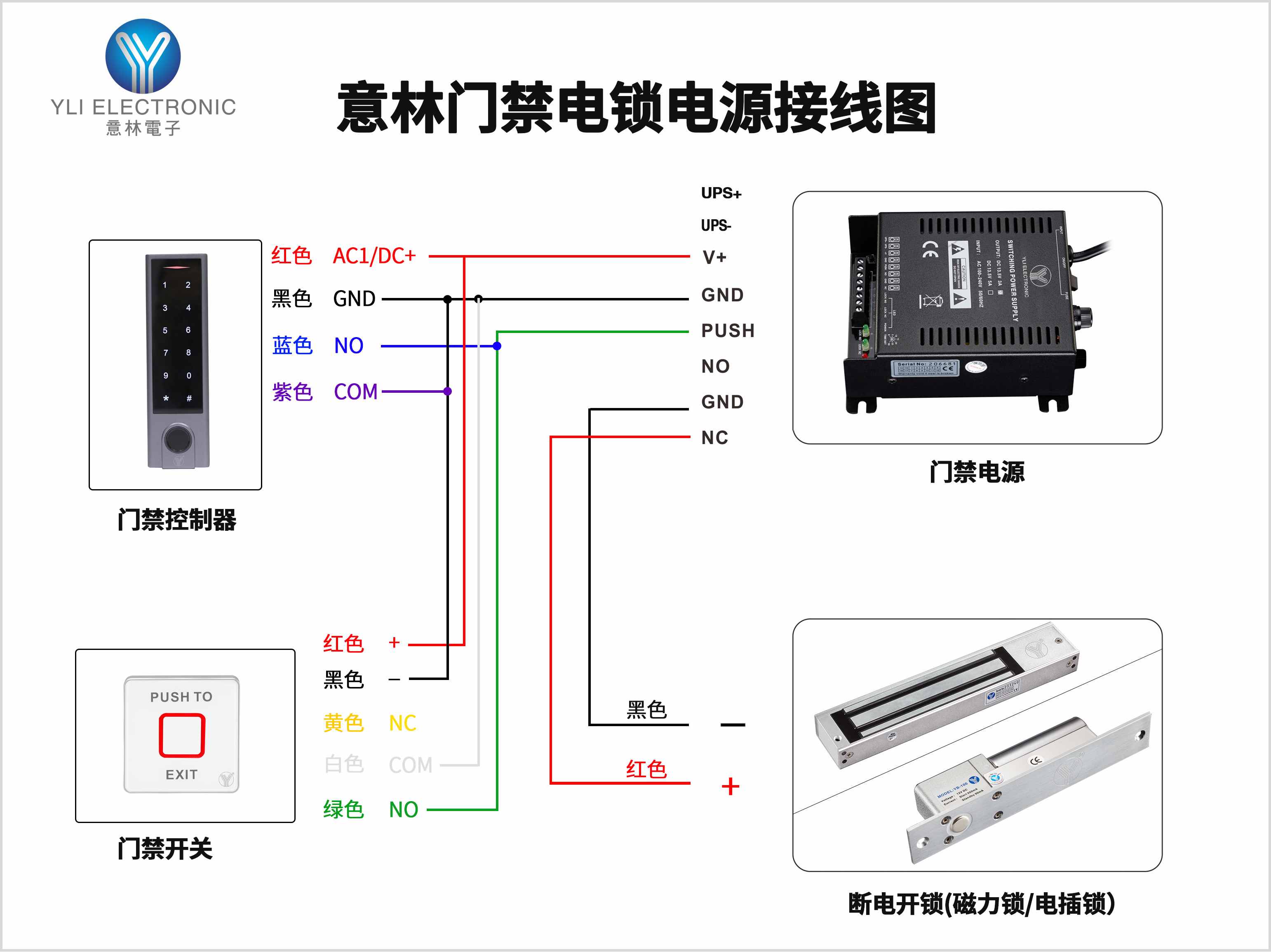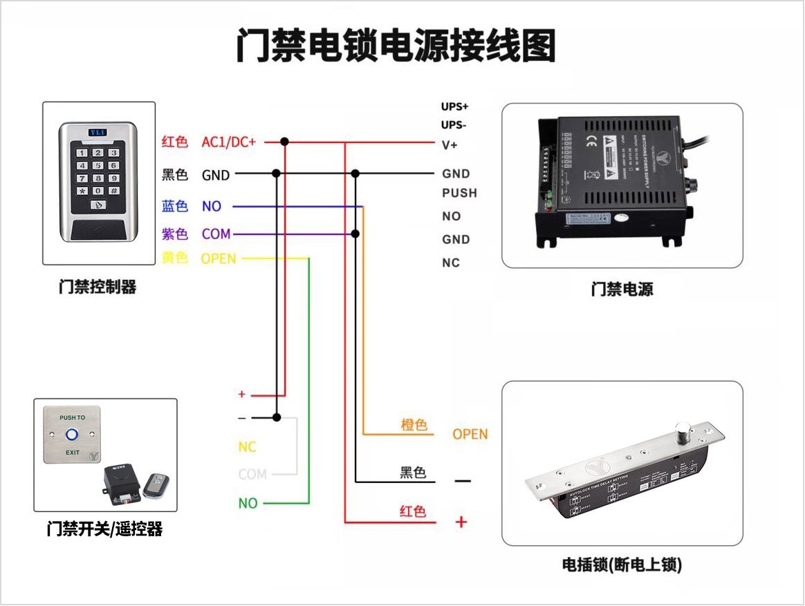 在接線時,請確保遵循以下原則:根據電插鎖的類型和門禁系統的要求,選擇正確的接線方式。