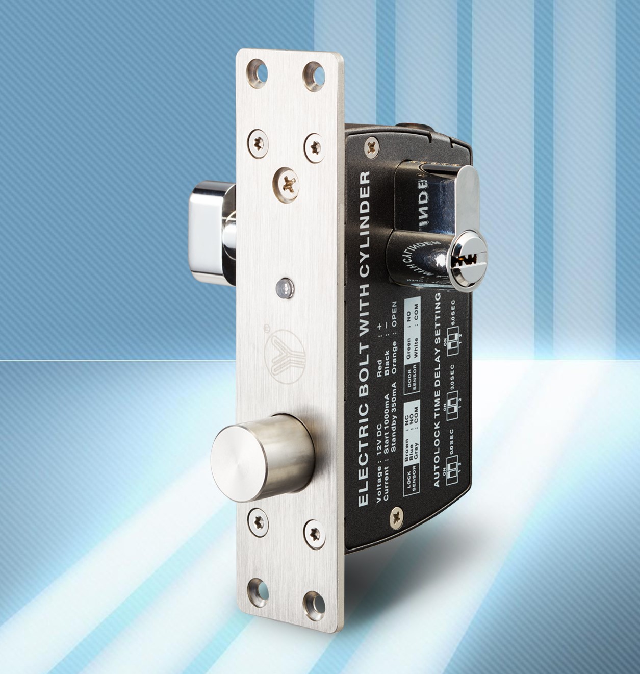 YB-500C(LED)是一款全金屬結構的加強型智能堅固電插鎖,附鎖膽功能,配有歐規鎖芯,可以達到平時“電控”與緊急時“手動”雙用的目的。鎖舌采用整體式304不銹鋼實芯棒材,經CNC車床精工而成,可承受1000kg沖擊,而且鎖舌插出后防撬功能的特殊高保安設計,連動部件全部采用金