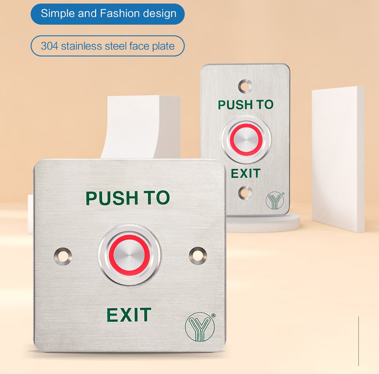 Piezoelectric Exit Button(Stainless steel) with LED in size of 90Lx35Wx20H(mm) suitable for all kinds of locks with feature of waterproof.