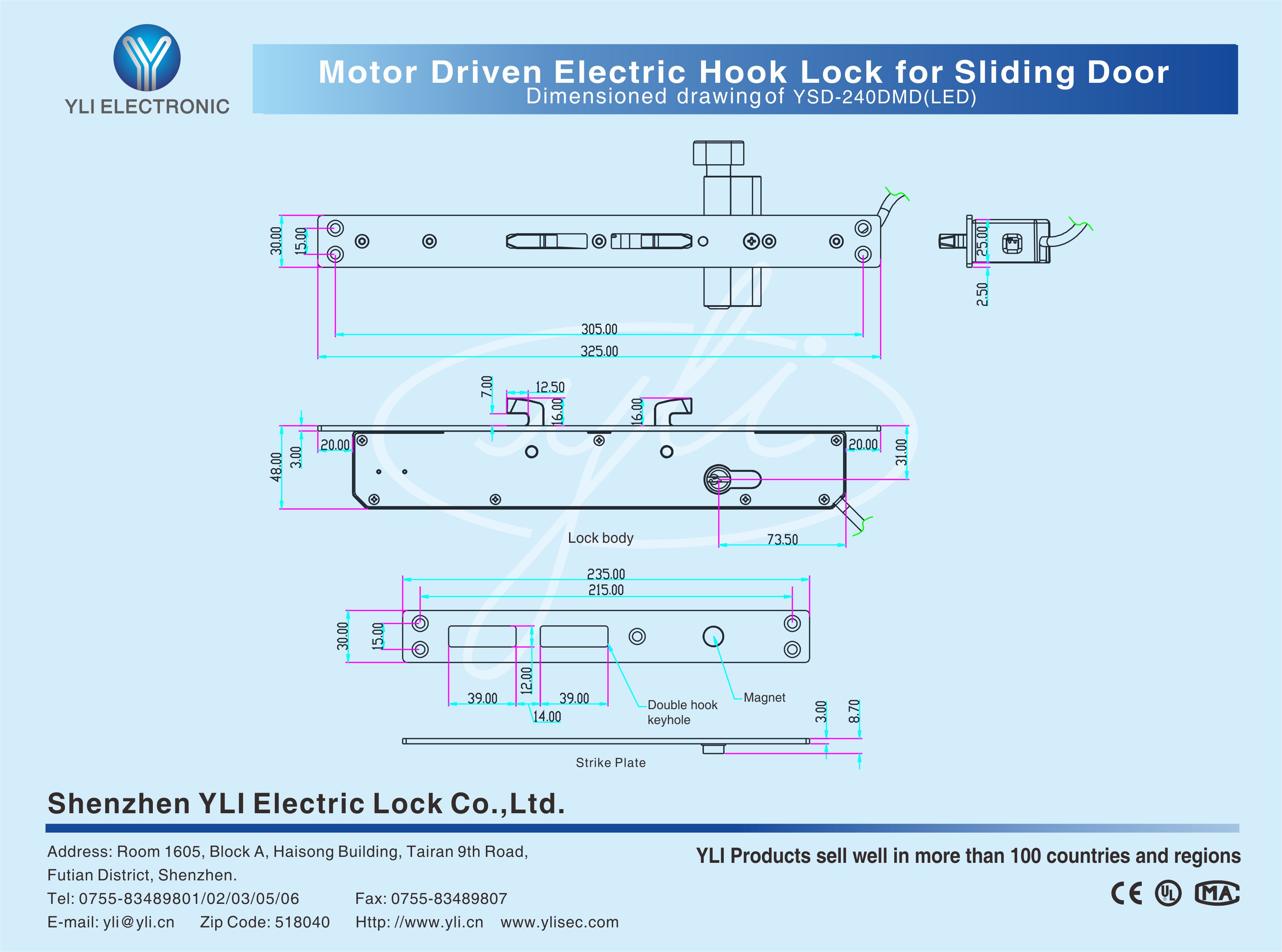 YLI Motor?Driven Electric?Hook?Lock?for Sliding Door, specially designed for sliding door, equipped with European standard lock cylinder, it can achieve the dual purpose of electric control at ordinary times and manual operation in emergency. The bolt is made of solid steel, processed by CNC lathe, and can withstand 370kg push/pull force, special high security design of anti-prying function after locking, and all the linkage parts are made of metal structure, can be used normally from -20 degree to 60 degree. Professional durable solenoid valve, excellent performance, safe and durable, is the first choice for engineering.
