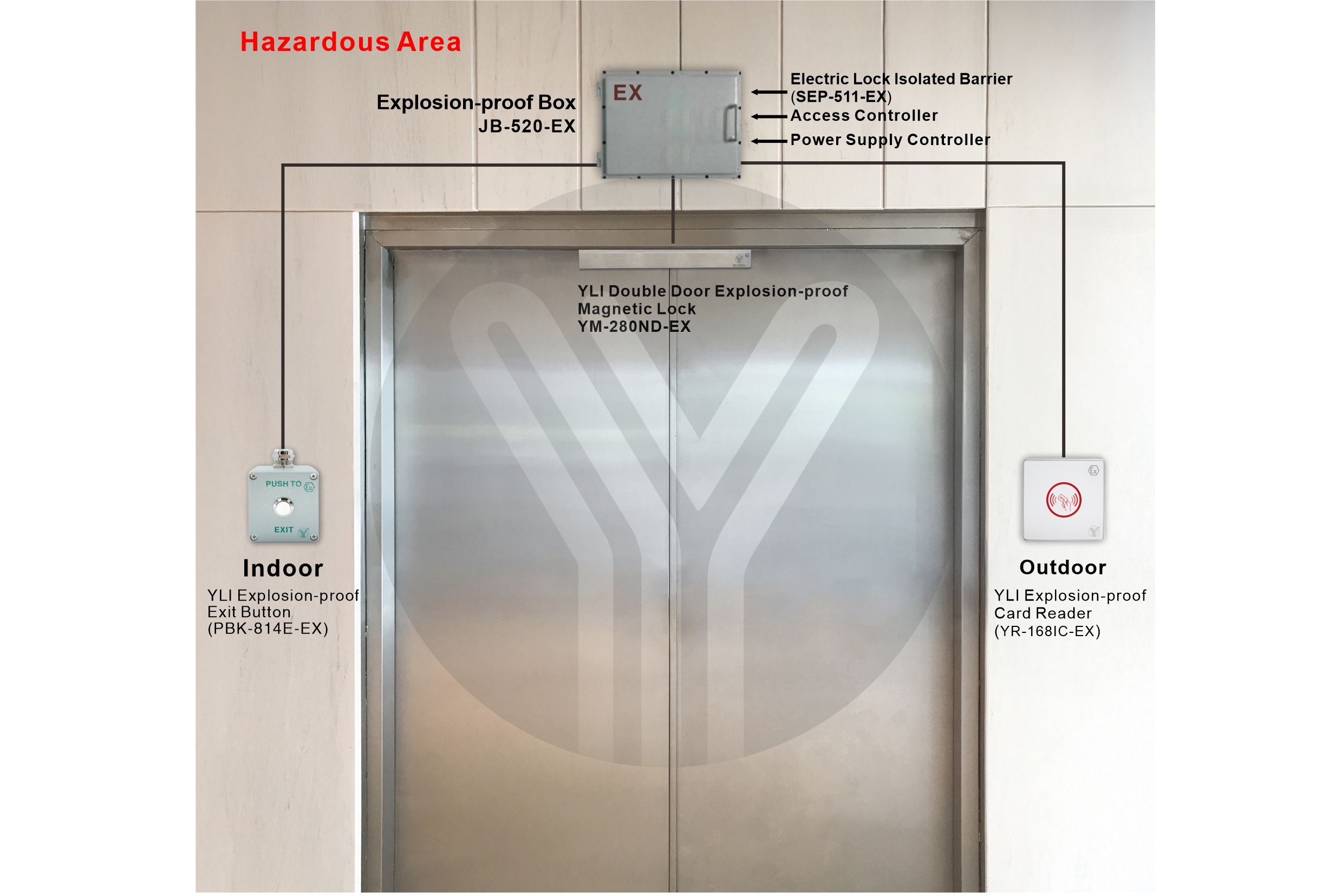 Explosion-proof magnetic lock is a kind of intrinsically safe electromagnetic lock that can be used in inflammable and explosive gas environment. It has simple structure, easy installation and maintenance, wear resistance, high reliability, and can be unlocked by power failure to escape in case of danger. It is especially suitable for petrochemical and other inflammable and explosive places.The explosion-proof electromagnetic lock produced by YLI are designed and manufactured in accordance with the relevant provisions of EU regulations EN IEC 60079-0:2018, IEC 60079-11:2012, EN 61241-11:2006.