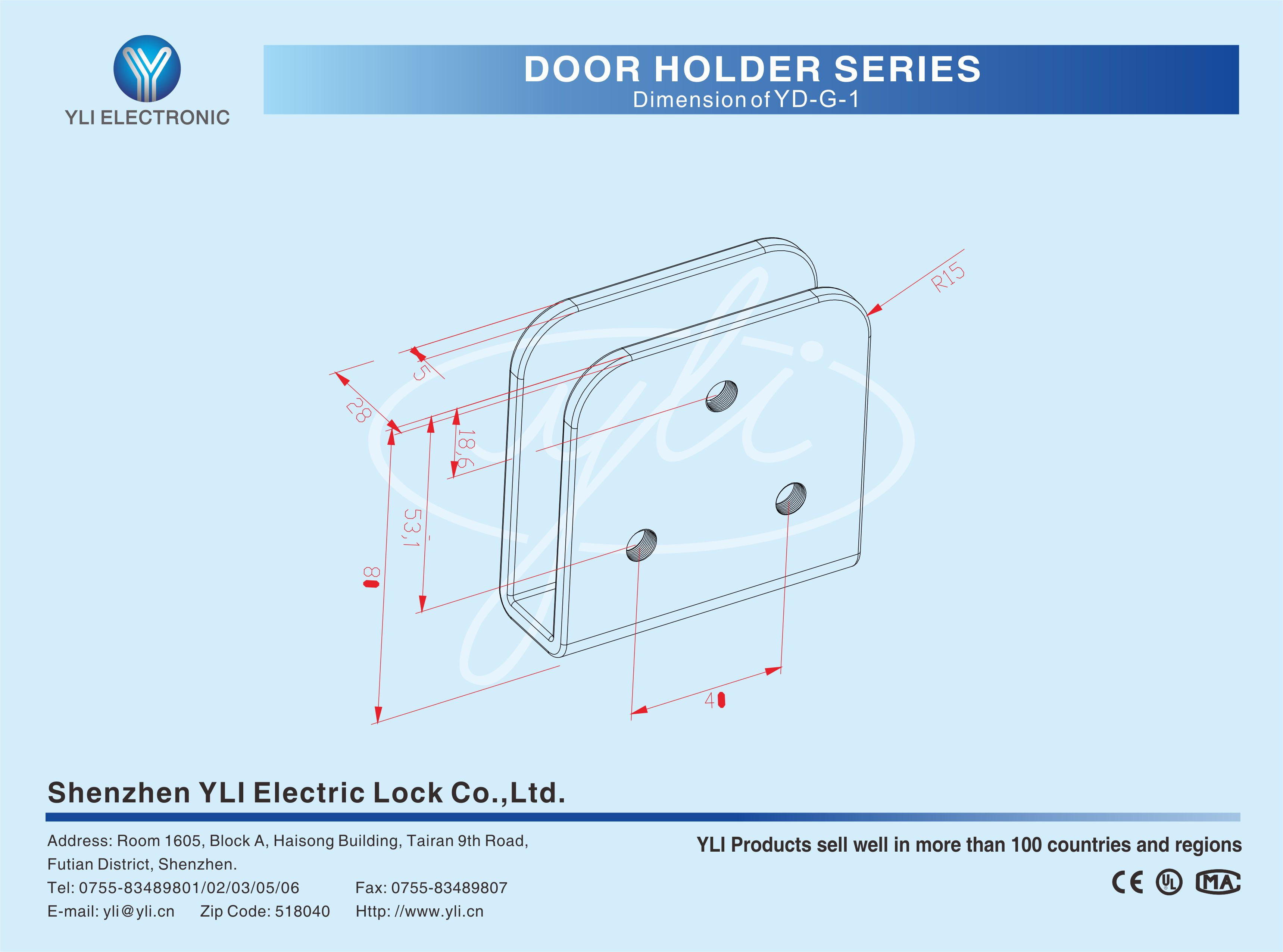 YDG-1 is door holder bracket for glass door,suitable for 12-18mm frameless glass door,used with YLI door holder series. U bracket for glass door;Install without drilling hole special design,door holder can suck with U bracket directly Thickening iron;Durable official authorized product of fire control project.