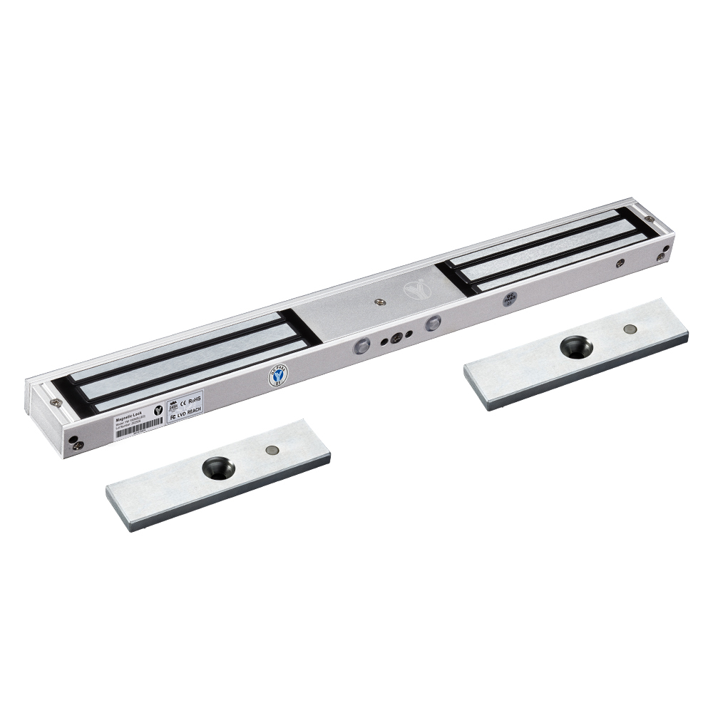 YM-180ND(LED) Double door magnetic lock is designed for wooden door, metal door, glass door and fireproof door. There is a set of lock status signal (NO/NC/COM) output contacts. The lock body is equipped with a large LED light . The green light indicates unlocking , and the red light indicates locking. YLl magnetic lock cores are produced with robotic laser welding technology, providing 2 to 3 times stronger impact resistance and torsional resistance than conventional production processes. The surface is treated with the internationally leading electroplating process and the lock itself has passed the 240-hour salt spray test in the national laboratory, achieving excellent performance of anti-oxidation, anti-rust and anti-corrosion. Our company offers a complete range of brackets for different locks.