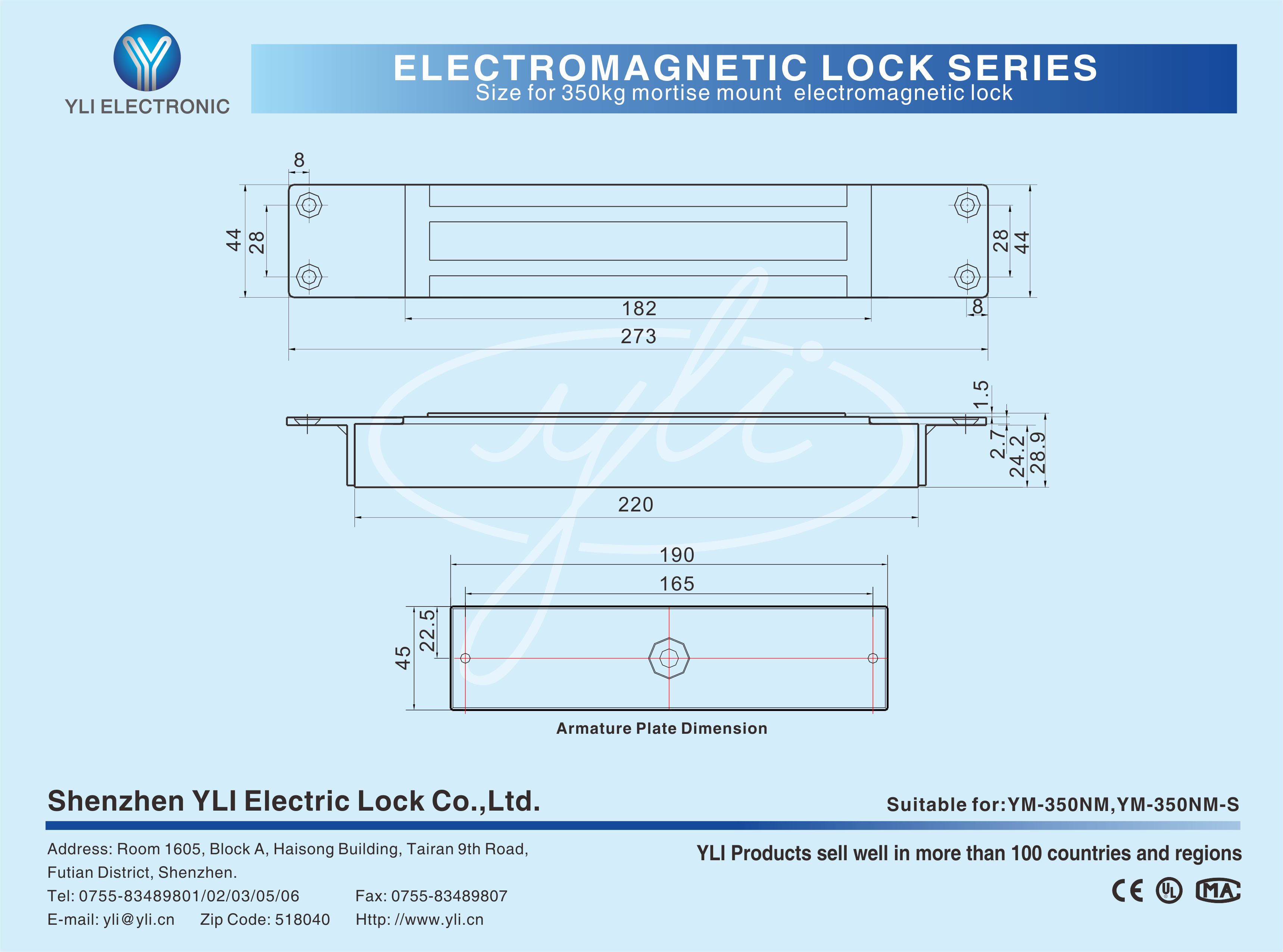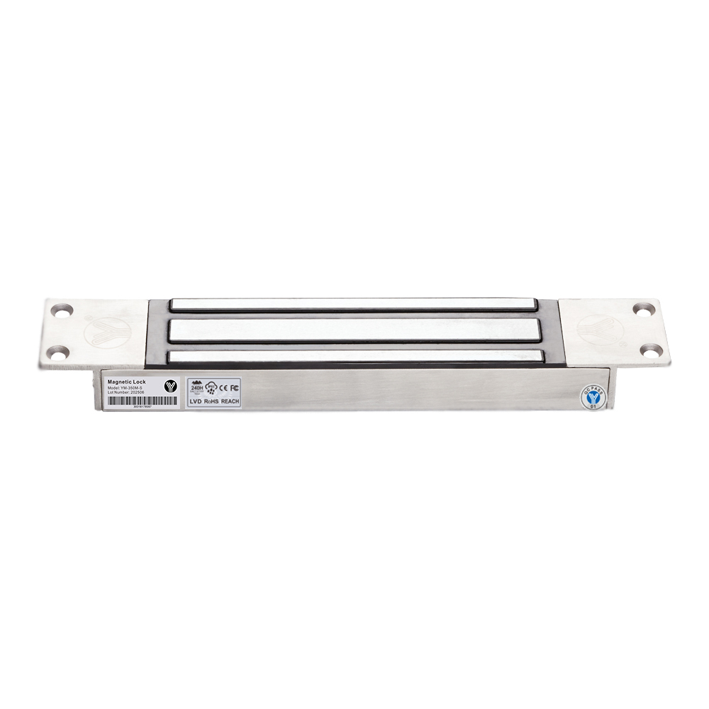 YM-350M/YM-350M-S Single door mortice magnetic lock is designed for wooden door, metal door, glass door, fire-proof door. There is a set of lock status signal (NO/NC/COM) output contacts, which provides real-time feedback for the access control system. YLl magnetic lock cores are produced with robotic laser welding technology, providing 2 to 3 times stronger impact resistance and torsional resistance than conventional production processes. The surface is treated with the internationally leading electroplating process and the lock itself has passed the 240-hour salt spray test in the national laboratory, achieving excellent performance of anti-oxidation, anti-rust and anti-corrosion, Our company offers a complete range of brackets for different locks.