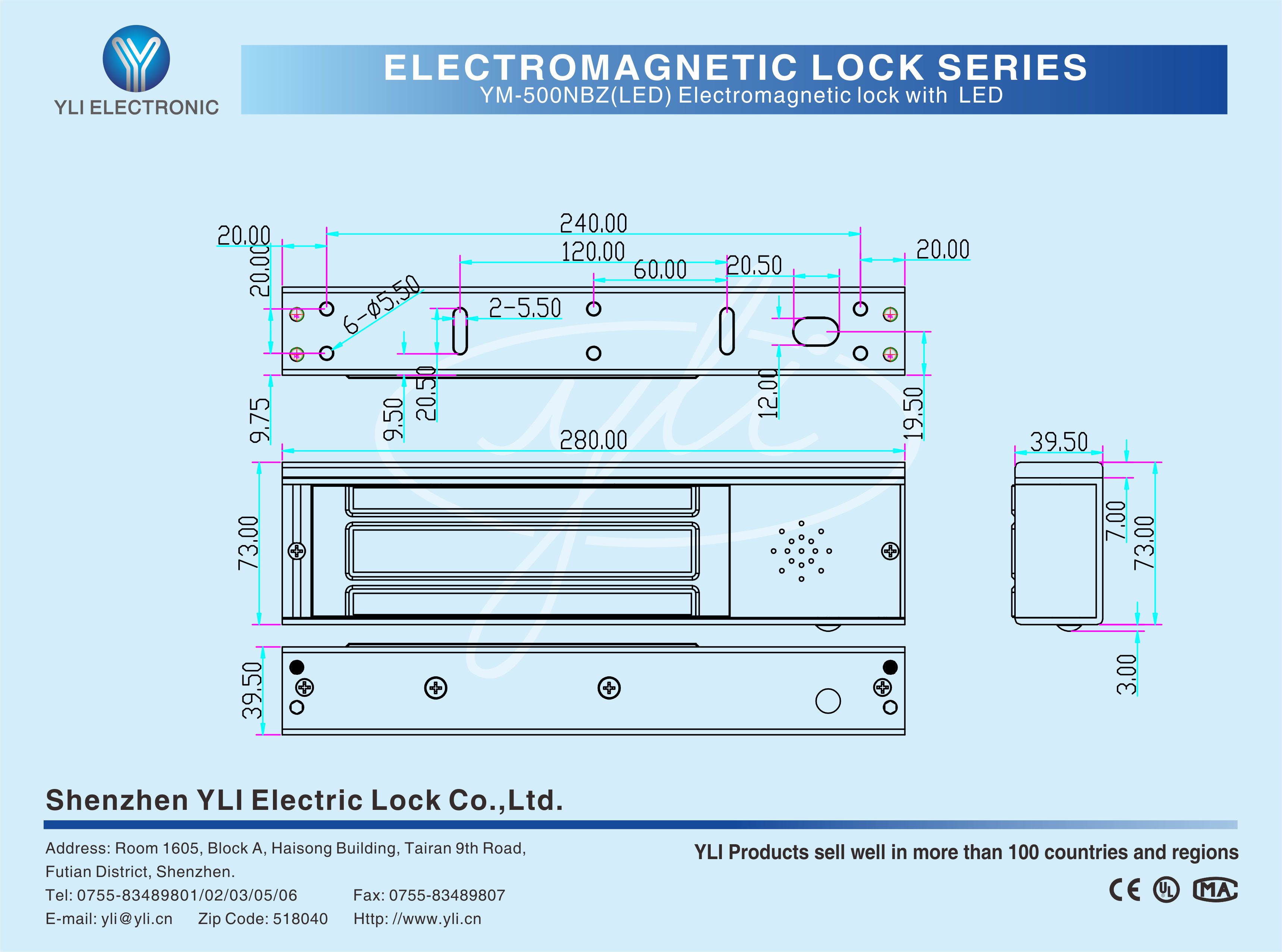YM-500NBZ(LED) Single door magnetic lock is designed for wooden door, metal door, glass door and fireproof door. it is equipped with a set of buzzer alarm. The internal buzzer alarm will sound until the door is closed if the lock is not closed within the set time (0-20 seconds). There is a set of lock status signal (NO/NC/COM) output contacts, which provides real-time feedback for the access control system.The lock body is equipped with a large LED light. The green light indicates unlocking, and the red light indicates locking. YLl magnetic lock cores are produced with robotic laser welding technology, providing 2 to 3 times stronger impact resistance and torsional resistance than conventional production processes. The surface is treated with the internationally leading electroplating process and the lock itself has passed the 240-hour salt spray test in the national laboratory, achieving excellent performance of anti-oxidation, anti-rust and anti-corrosion. Our company offers a complete range of brackets for different locks.