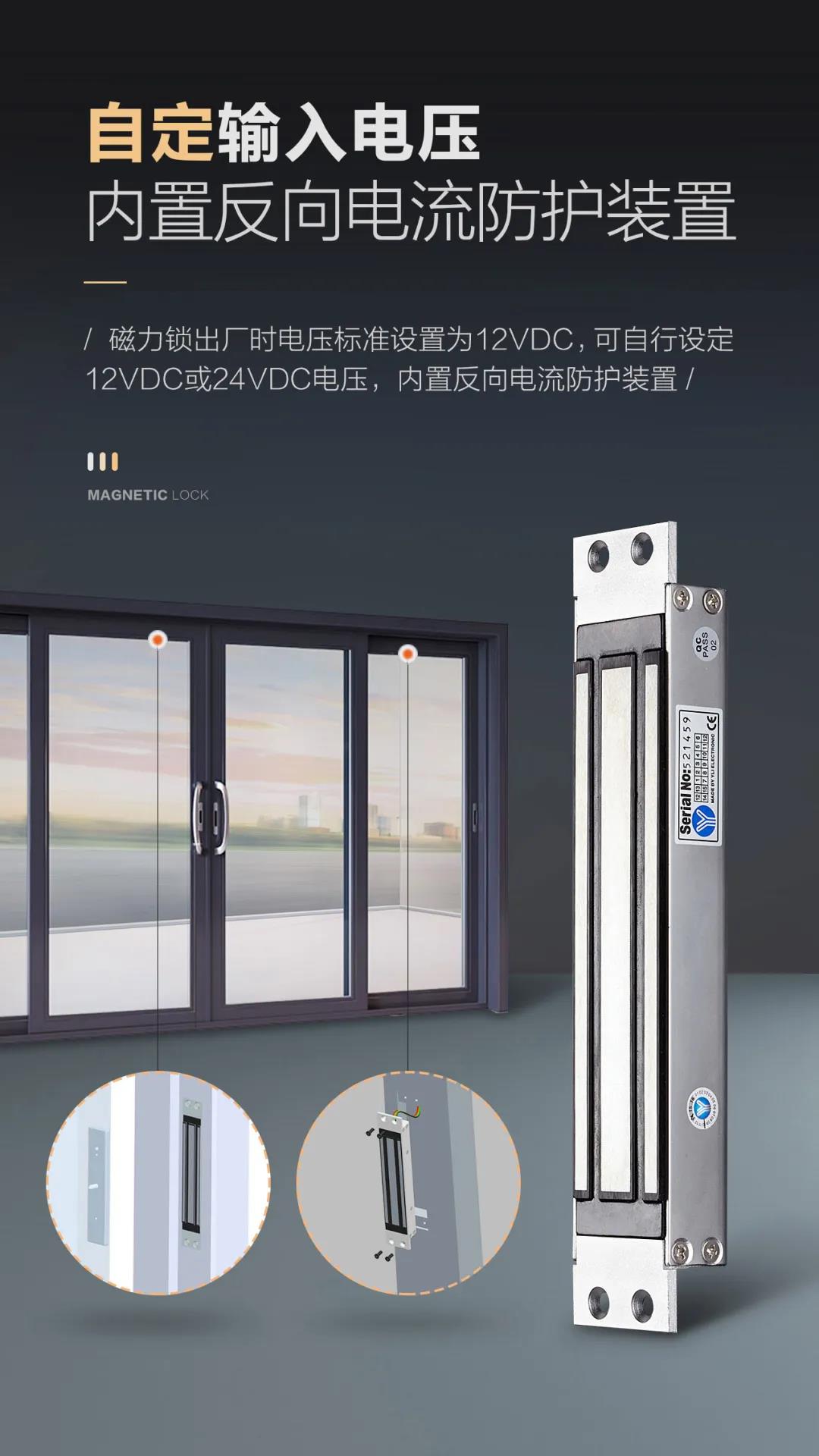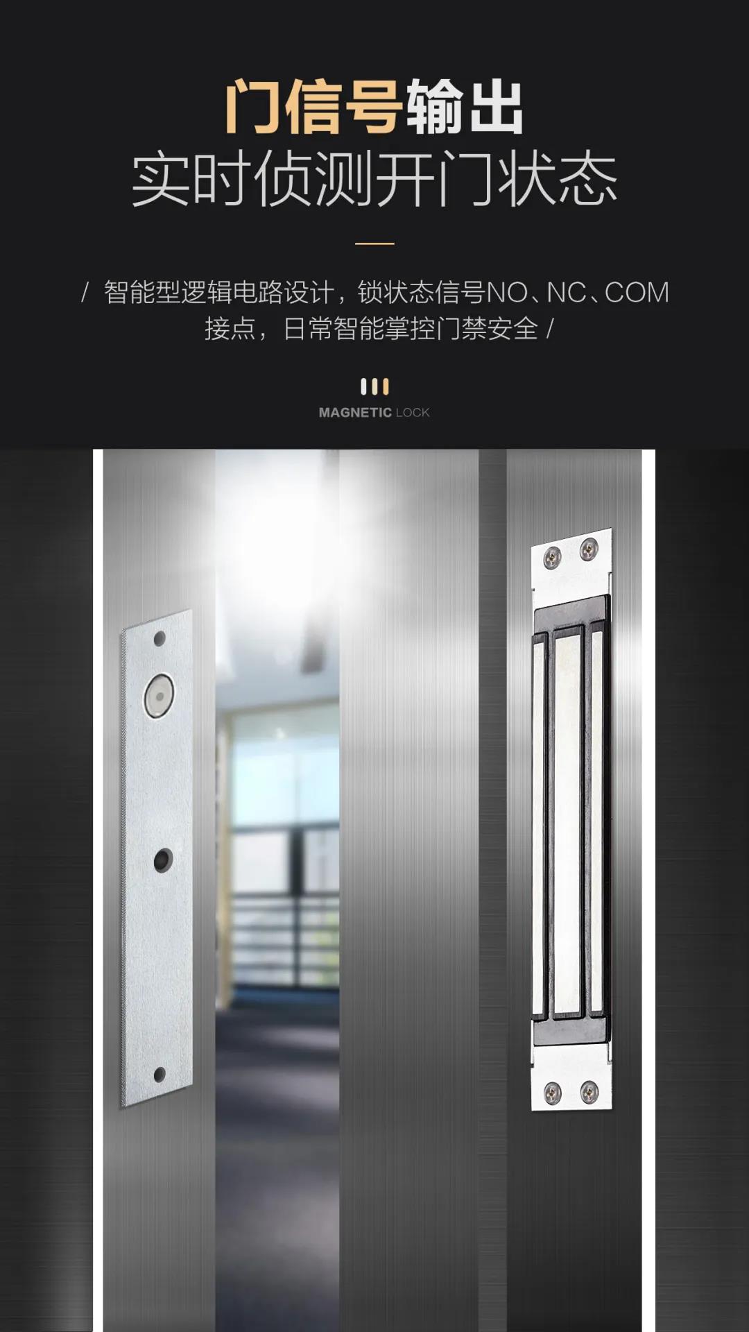 是針對(duì)一般金屬門、木門、防火門設(shè)計(jì)的,磁力鎖固定于門框上方,以磁力來(lái)吸附門扇,安全可靠。安裝時(shí)省時(shí)省力。內(nèi)開式門或無(wú)框玻璃門、窄框等均有附件配套,特殊防殘磁設(shè)計(jì),讓門禁自動(dòng)化更安全。