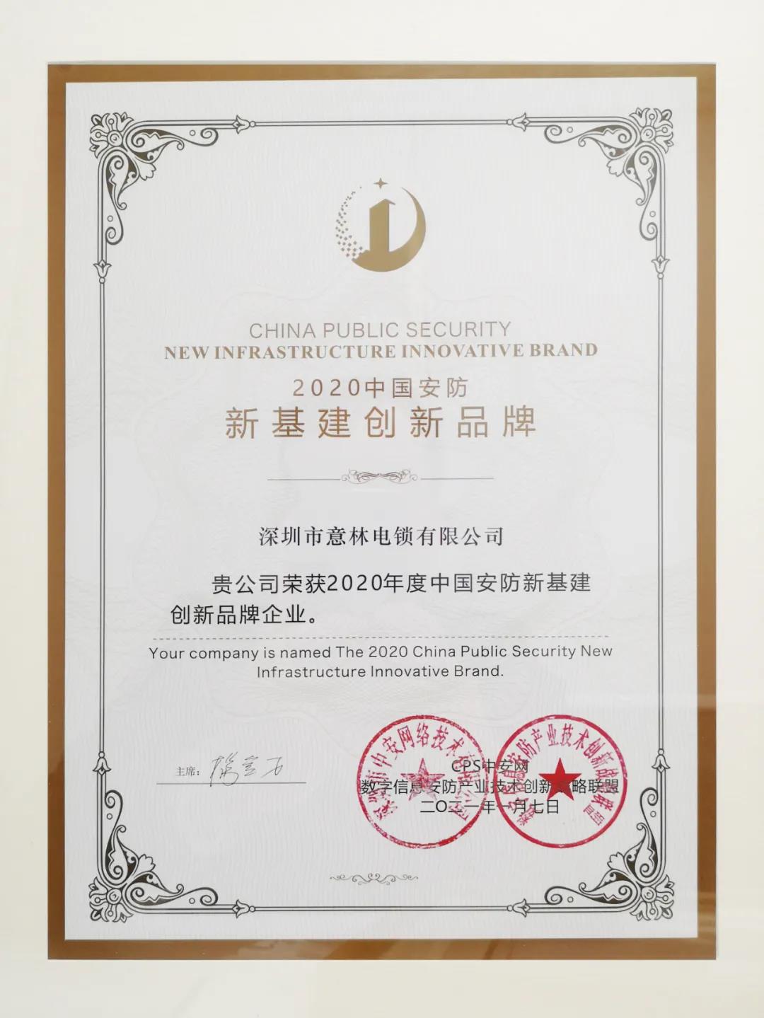 在此次大會上,深圳市意林電鎖有限公司榮獲“2020中國安防新基建創(chuàng)新品牌”、“2020中國智慧城市建設推薦品牌”兩項大獎,彰顯了意林電子在品牌影響力、研發(fā)生產(chǎn)等方面的綜合實力。
