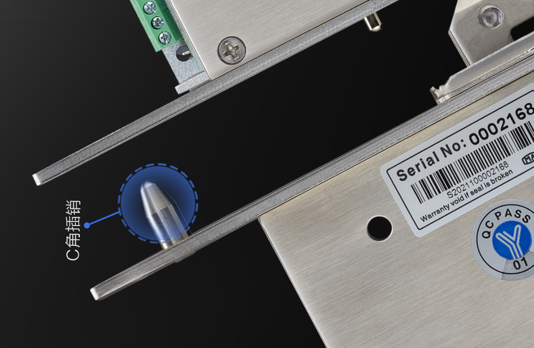 特別設計增加兩個定位插銷,防止抬門功能,而且帶C角的插銷更容易導入固定孔。
