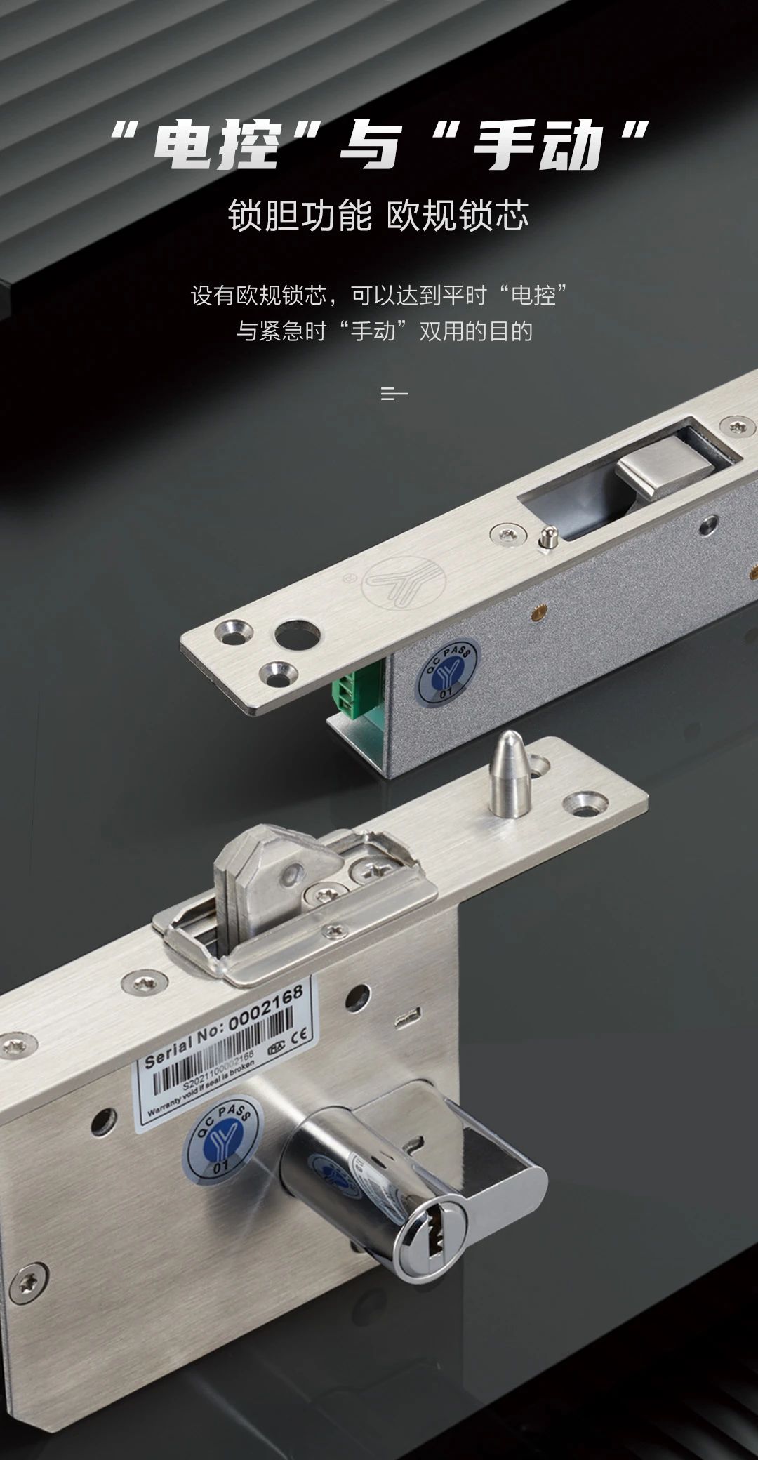 設有歐規鎖芯,可以達到平時“電控”和緊急“手動”雙用。