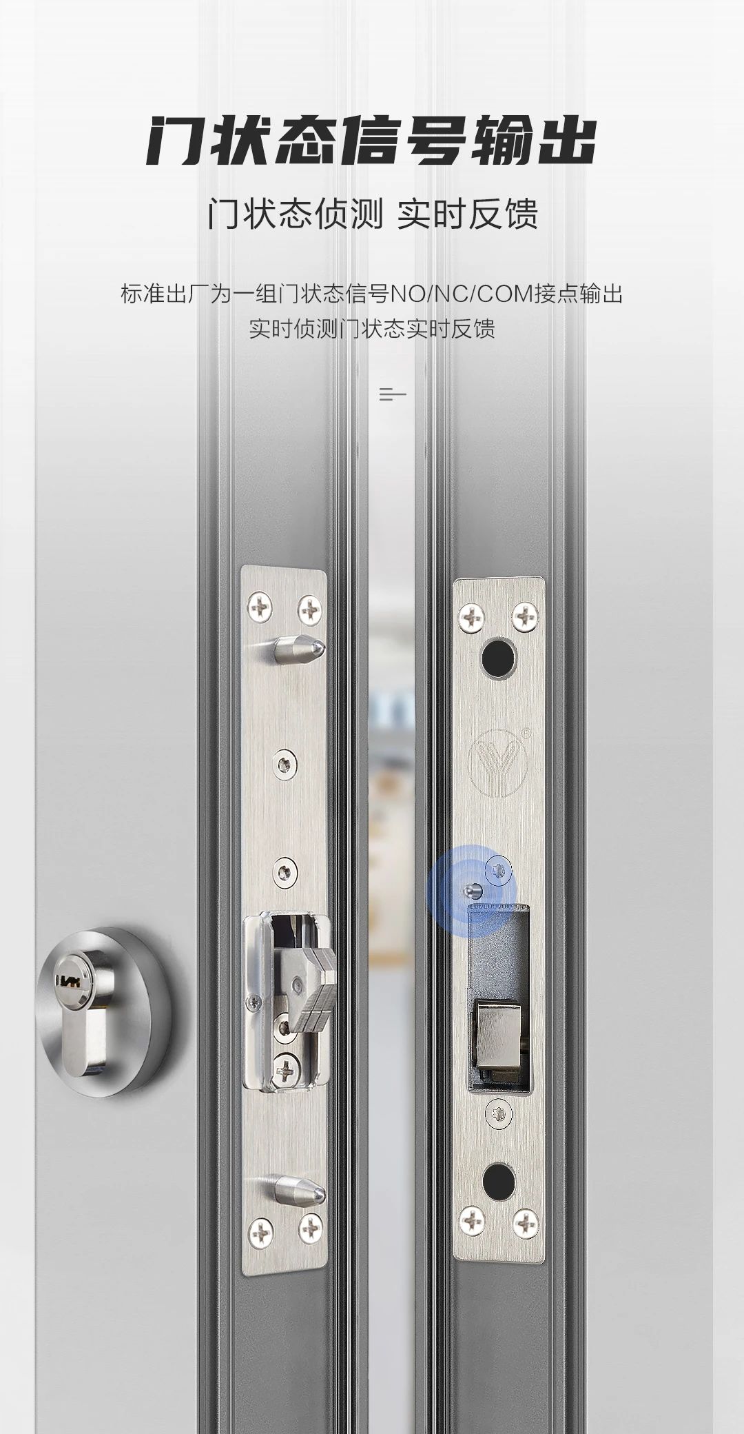 標準出廠為一組門狀態信號NO/NC/COM接點輸出,實時偵測門狀態進行反饋。