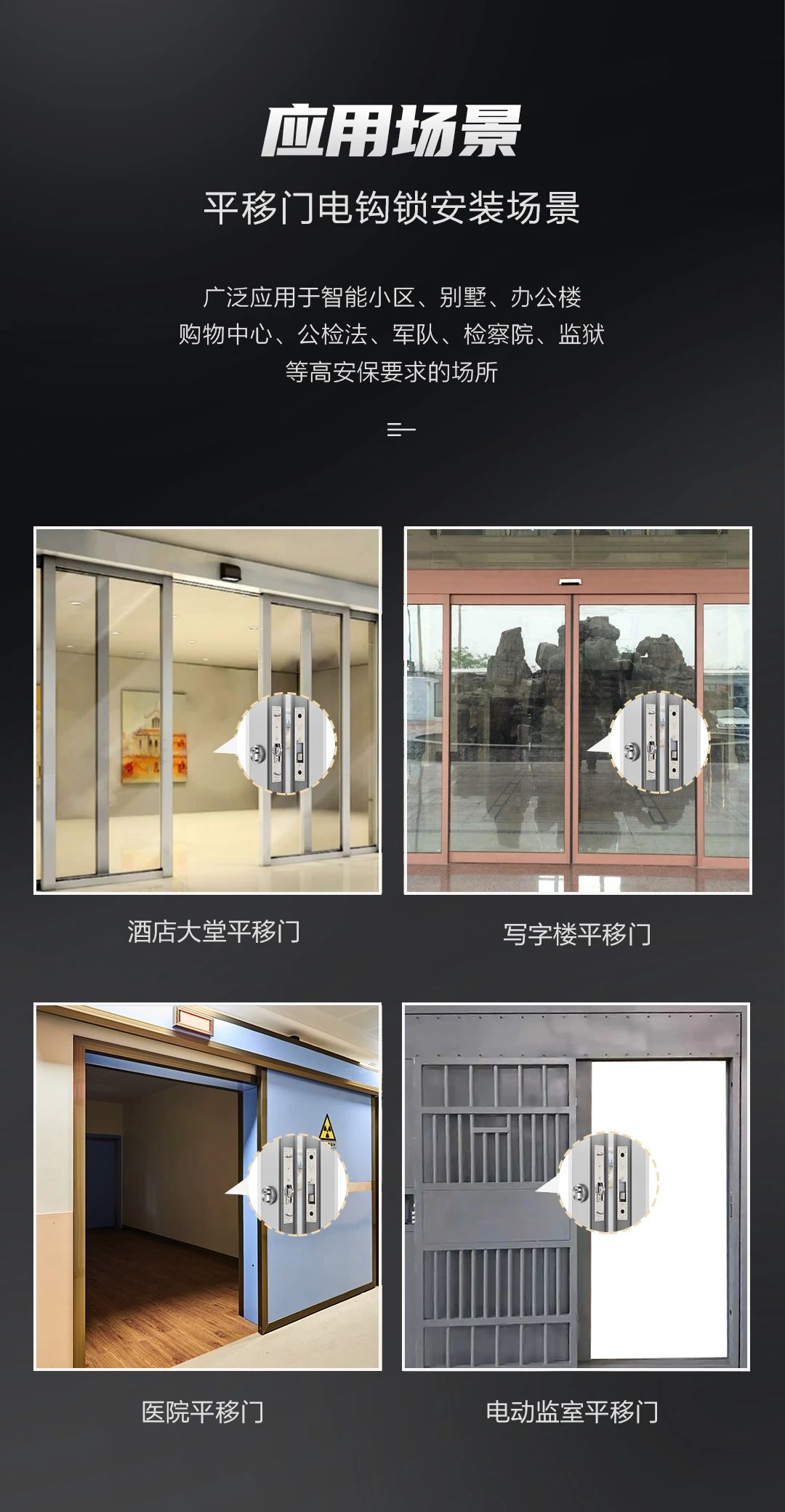 是一款特殊高安保設計的平移門專用電鎖,全金屬結構鎖體,內部聯動部件也全部使用金屬加強處理設計,可承受