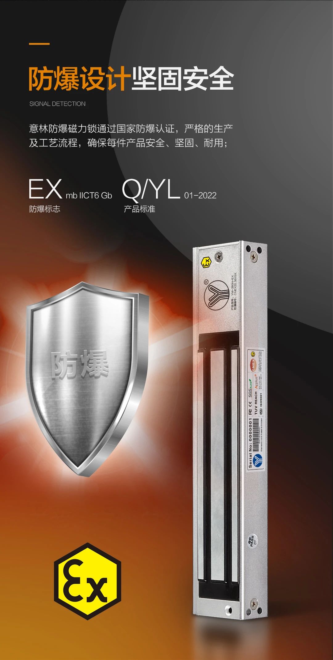 意林防爆磁力鎖是一種能夠使用在易燃易爆環境中采用本質安全防爆形式的一種電磁鎖,經過防爆產品檢驗機構檢定合格,已通過CNEX國家防爆標準認證。